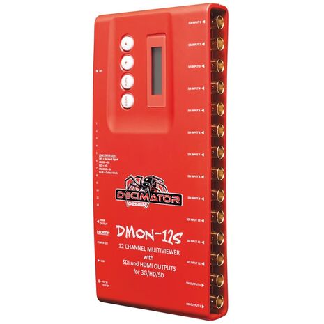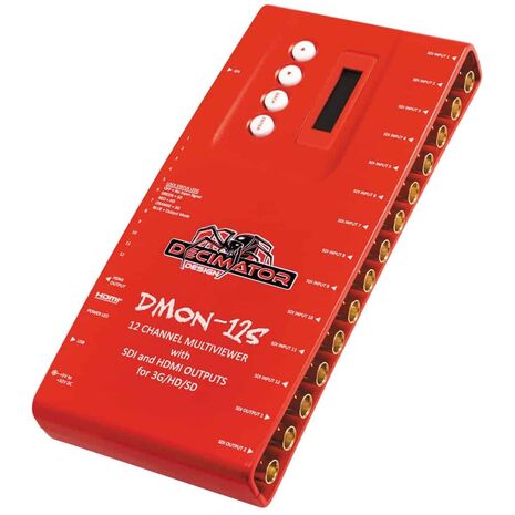 Featuring 12 independent 3G/HD/SD-SDI inputs, the DECIMATOR DMON-12S Multi-Viewer can be used either as a 1-to-12-channel multi-viewer or 12-to-1-input multiplexer supporting up to 1080p@60/59.94/50Hz on input and output.