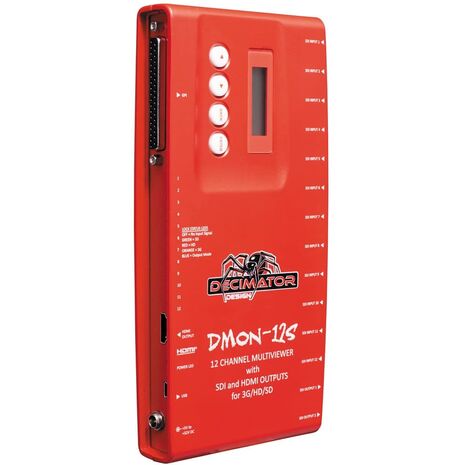 - A miniature multi-viewer with front-panel LCD menu access, the DMON-12S is suitable for both on-location and studio applications, as you won't need to use a computer or DIP switch to make selections and adjust settings.
