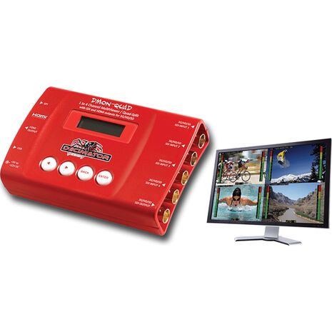 The DMON-QUAD from DECIMATOR is a compact 4-channel 3G-SDI multiviewer and multiplexer for use in studios, post houses, and other professional video applications. It supports a variety of resolutions and formats up to 1080p60 over SDI, and can arbitrarily mix formats and aspect ratios. The four SDI inputs can be output simultaneously over the HDMI or SDI outputs for a quad-view display. Tally information can be supplied via the RJ-45 connector.