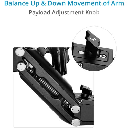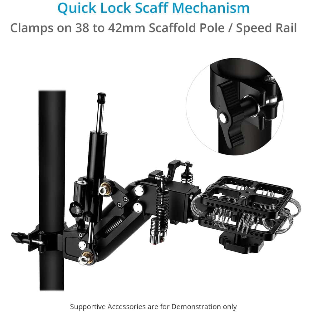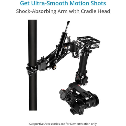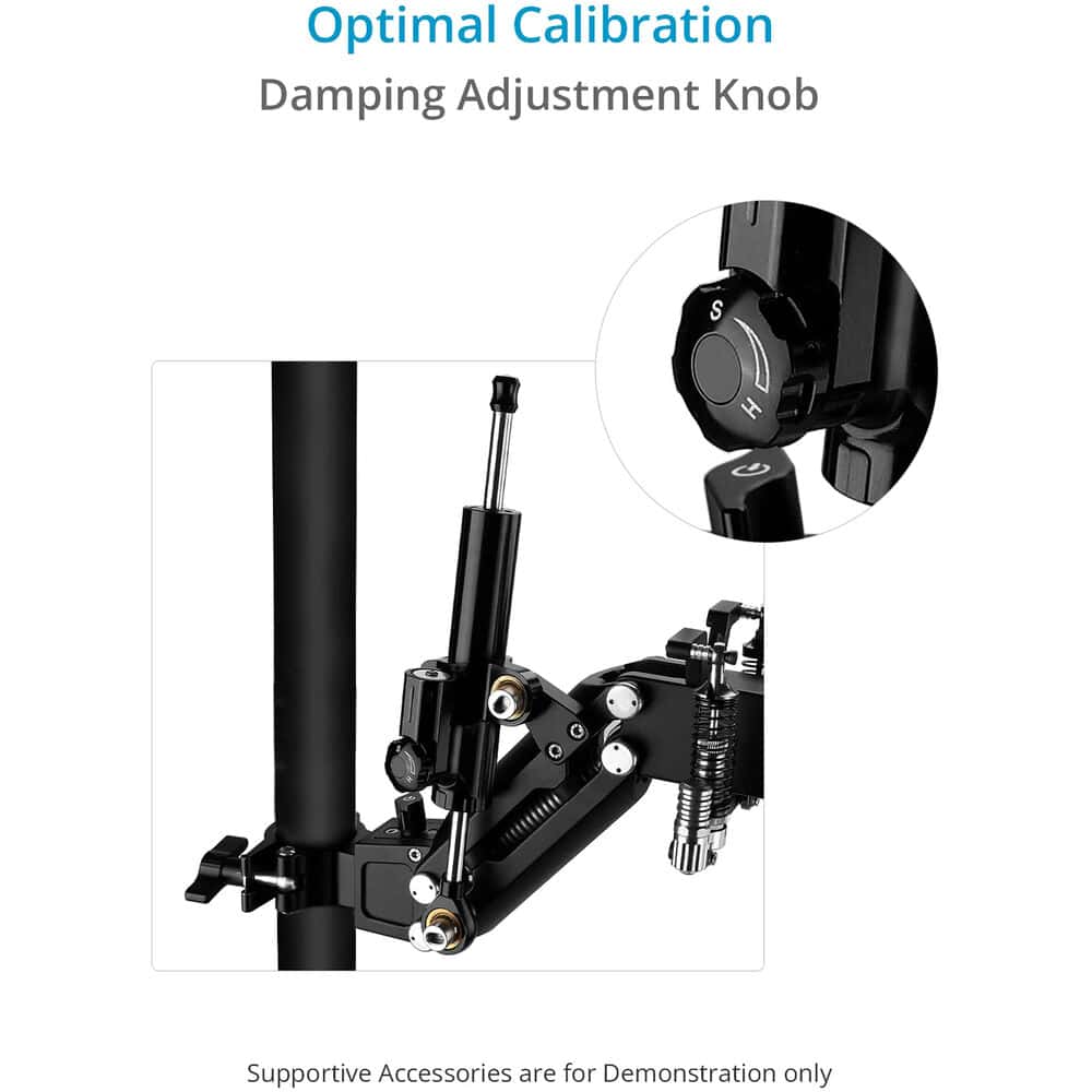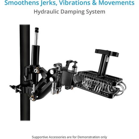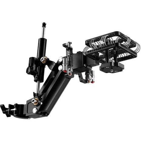 Use your compact gimbal stabilizer to achieve car-mounted visuals with this PROAIM AIRWAVE V5 : CAMERA VIBRATION ISOLATOR ARM. The system features a hydraulic damping system and shock-absorbing springs to prevent unwanted vibrations in your footage and reduce strain on your gimbal's motors. For more unexpected movements, the cradle head will absorb any additional shock. The V5 supports rigs from 3 to 7 kg and has a 1/4"-20 screw to secure your gimbal to the main arm. A rod clamp on the back of the arm connects the V5 to rods measuring 1.5 to 1.7" in diameter.