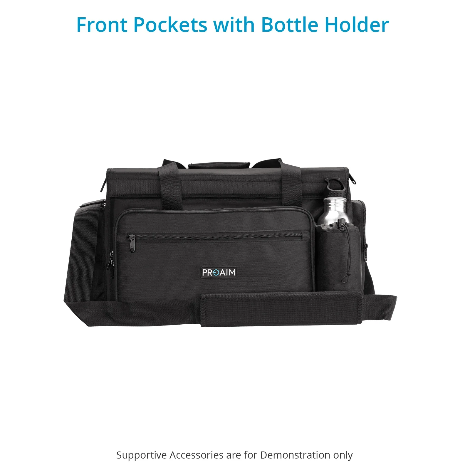 The Proaim Cine Cube Camera Bag withstand any weather & helps you to carry your Photography / Videography gear securely & comfortably. It has two side pockets along with the gear loops to take your small tools, pens or wires. The front of the bag has a double accessory pocket, and a bottle holder. The back of the bag also has a slate pocket. The outer material is dust & water-resistant. It is easily wipe-able.